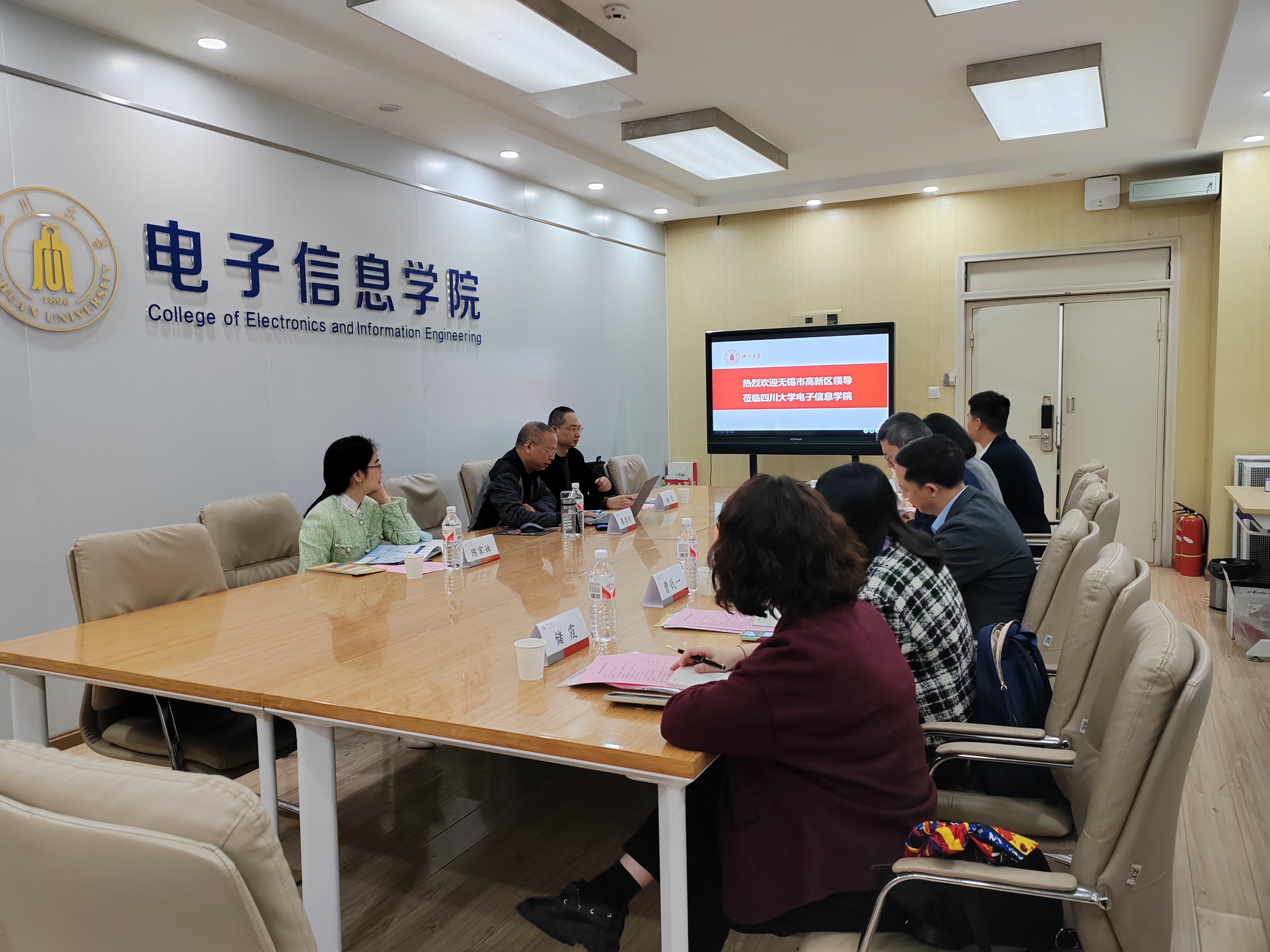 3月27日上午9点30,18XXX 和无锡市高新区校地合作洽谈会顺利举行,无锡高新区组织部副部长、兼人社局局长孙昊,区人社局副局长张轶和无锡高新区人才集团董事长严茵等5人参加会议,学院党委副书记廖勇明、校就业指导中心市场科科长陈家姝、学院学生科科长谢明参加了会议。