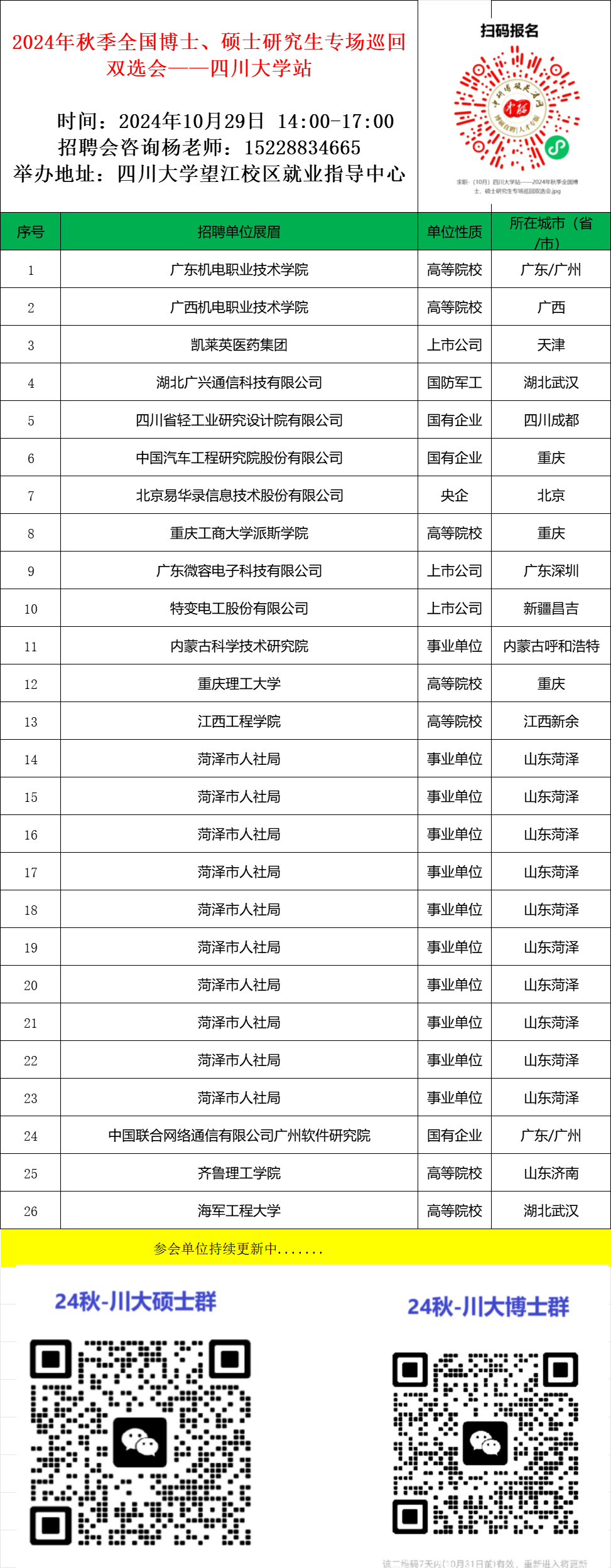 2024年秋季全国博士、硕士研究生专场招聘会—18XXX 站
