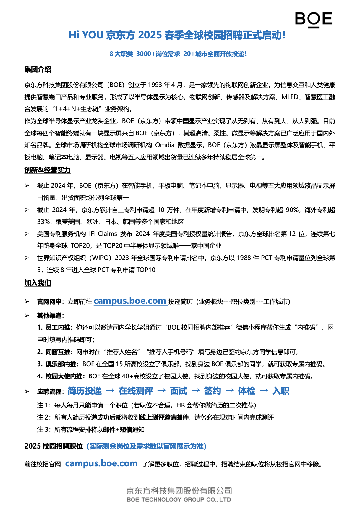 京东方科技集团股份有限公司(BOE)创立于1993年4月,是一家为信息交互和人类健康提供智慧端口产品和专业服务的公司,形成了以半导体显示事业为核心,Mini LED、传感器及解决方案、智慧系统创新、智慧医工事业融合发展的“1+4+N”航母事业群。