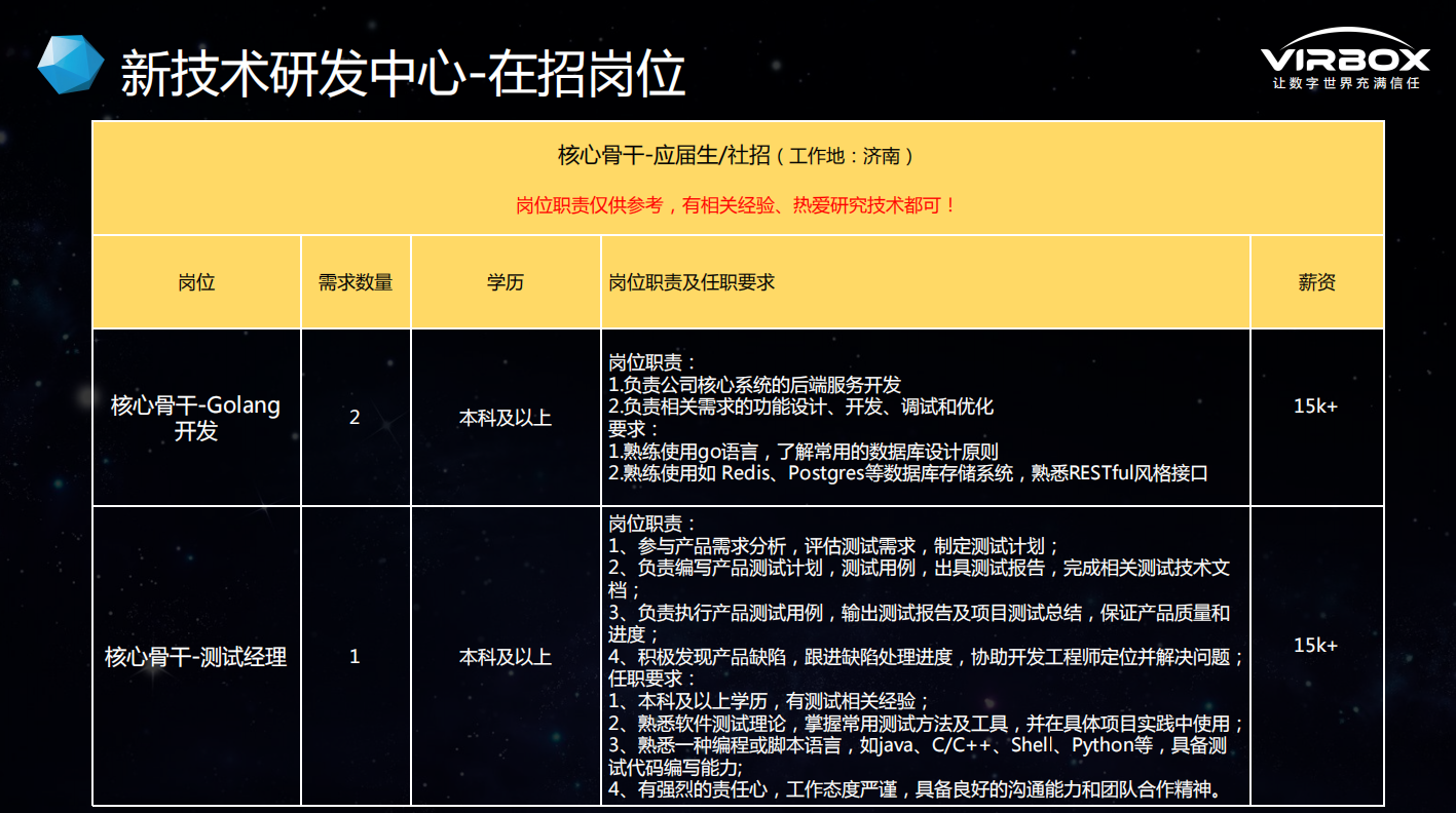 3. 岗位:Golang研发、客户端APP开发(flutter框架)、测试经理(详情可查看企业介绍pdf);