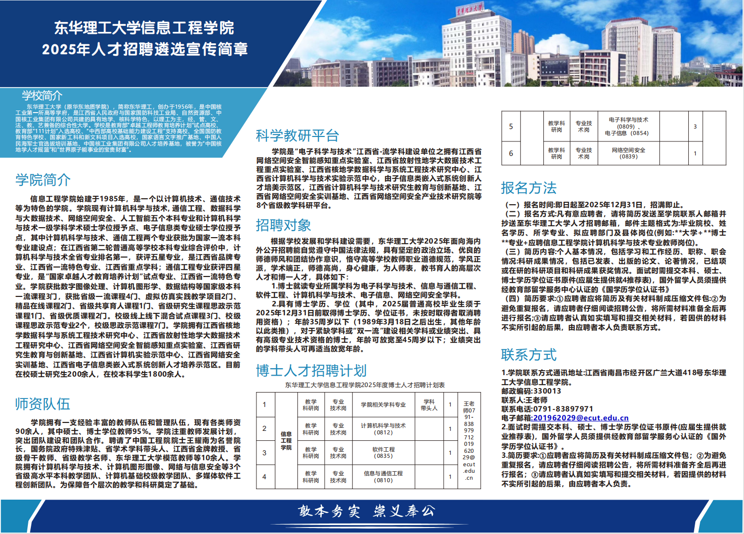 东华理工大学信息工程学院2025年人才招聘