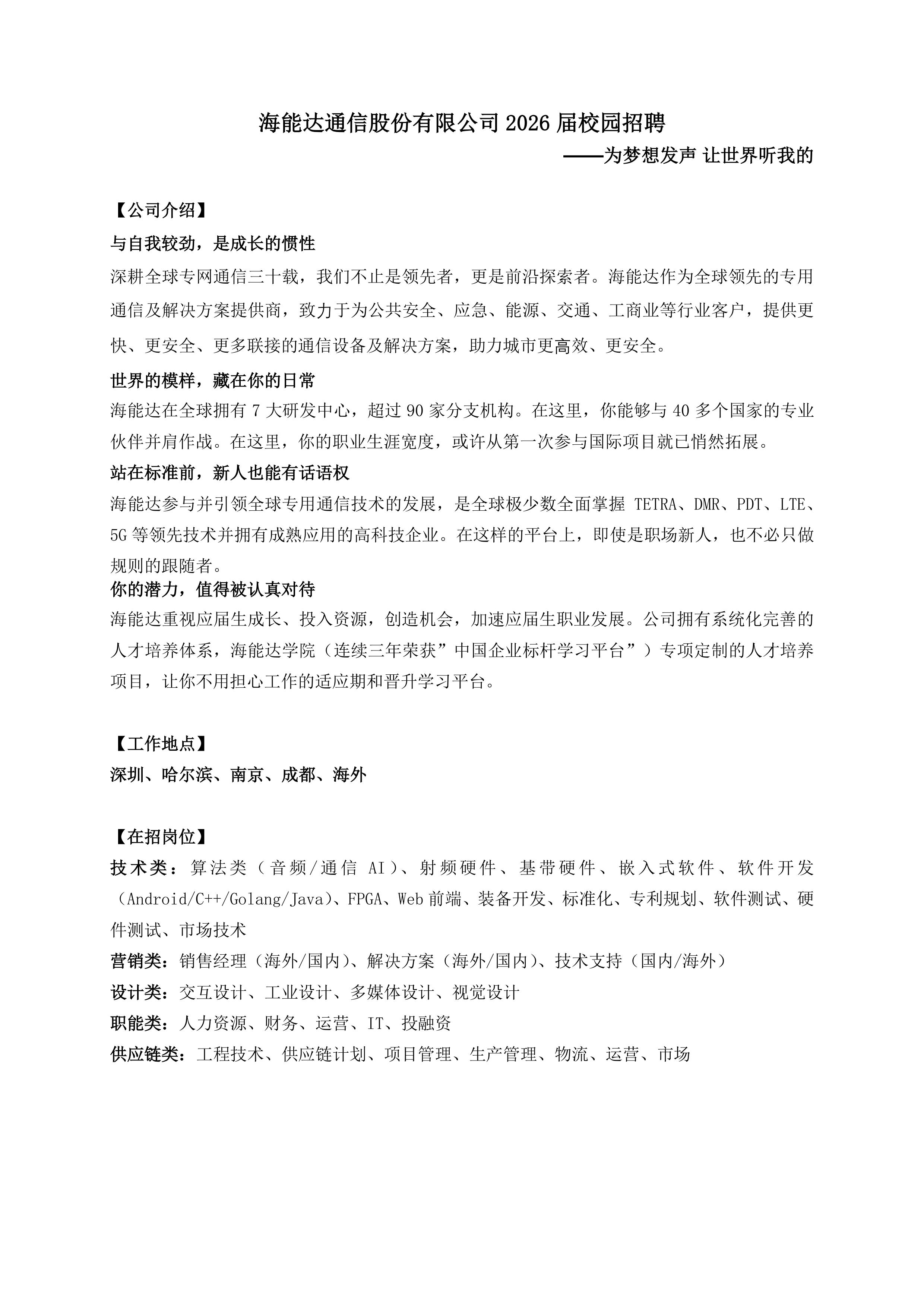 【海能达通信2026届校园招聘海量岗位开放】