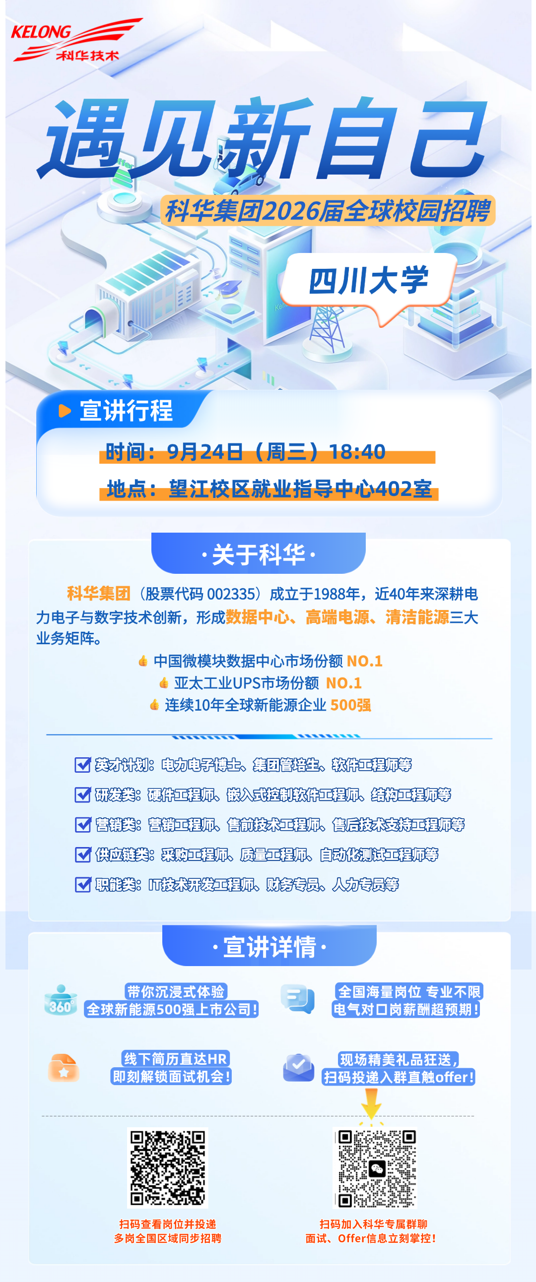 👏科华集团成立于1988年,近40年来深耕电力电子与数字技术创新,形成数据中心、高端电源、清洁能源三大业务矩阵。公司以“AI+数字能源”为核心,为互联网、金融、交通、石化、通信、电力、政府、医疗、科研教育等行业提供智慧电能及智算解决方案,共建数字低碳未来。