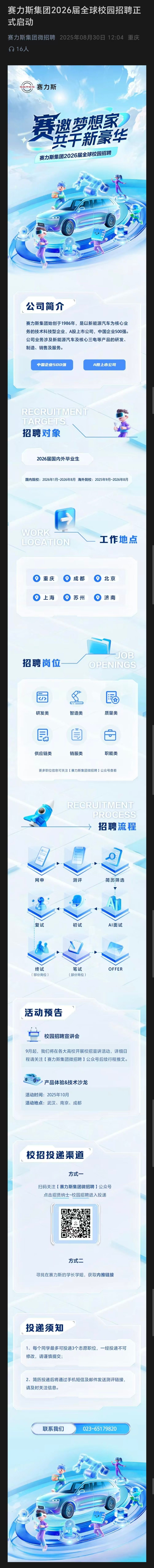 详情请关注“赛力斯集团微招聘”公众号了解并投递