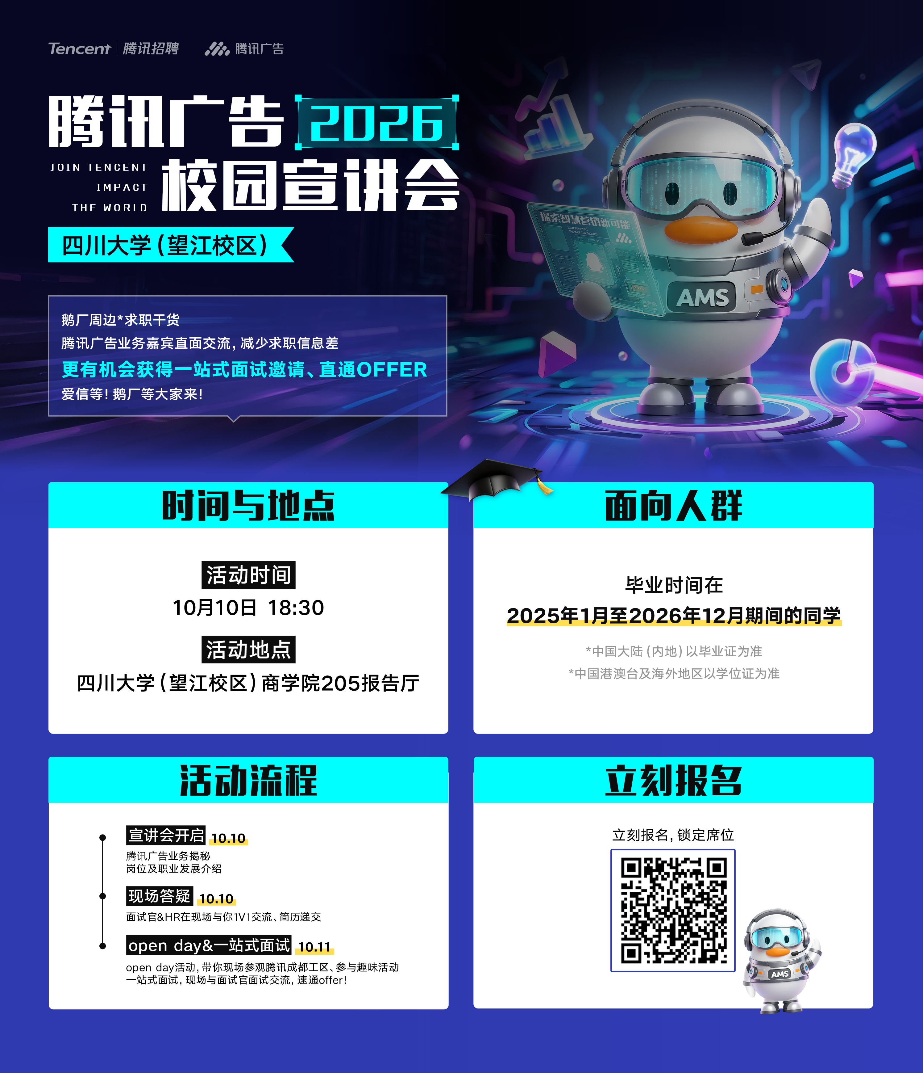 *腾讯广告2026校园招聘火热招聘中!--川大专场宣讲即将到来!