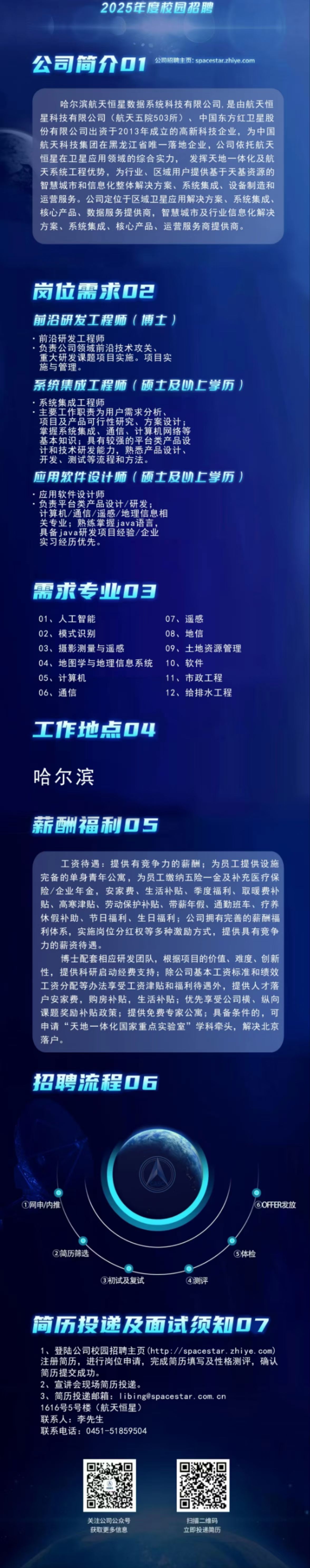 哈尔滨航天恒星数据系统科技2025年秋季招聘(硕博),下周一10月20日下午3点,18XXX 望江校区基础教学楼A402