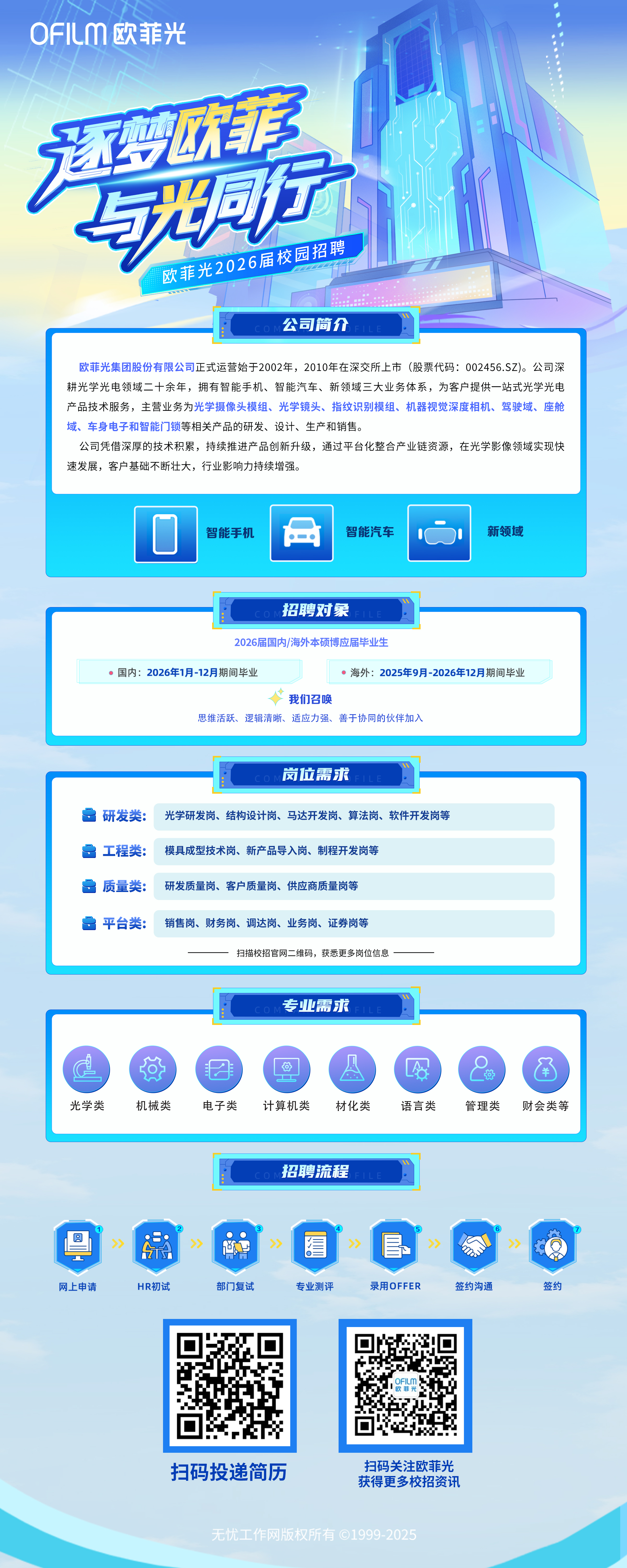 需求专业:物理光学类、机械类、电子通信类、计算机软件类、材料类、财会类、管理类等