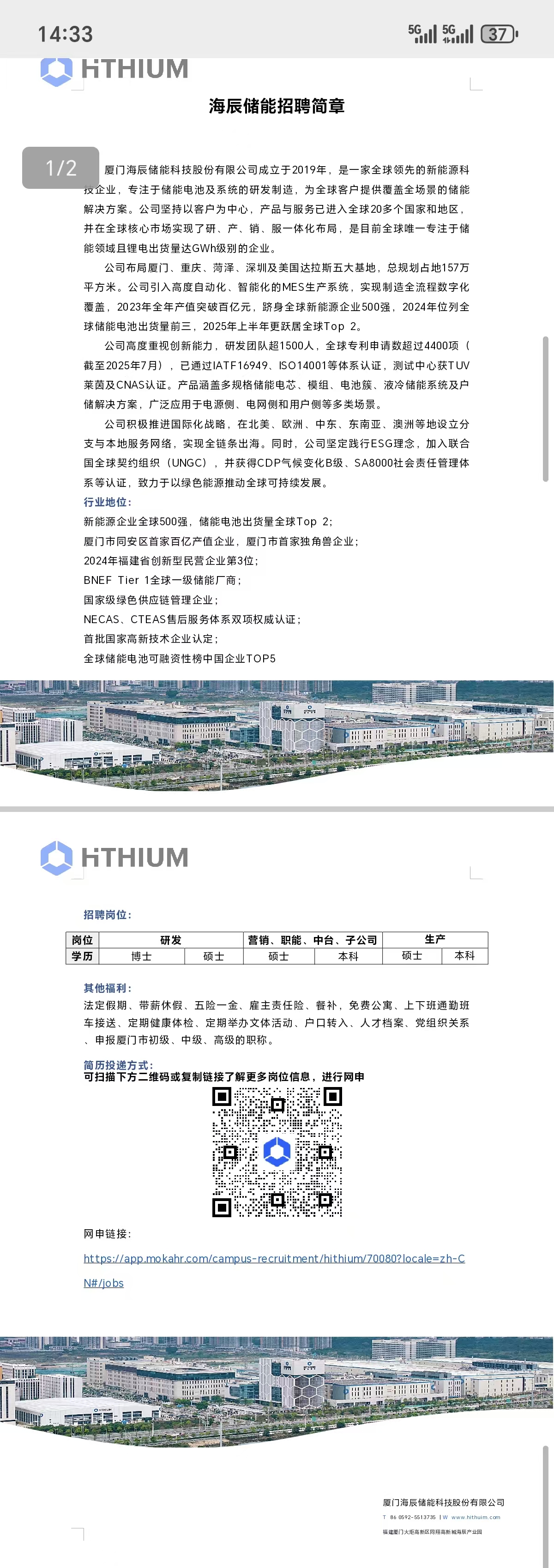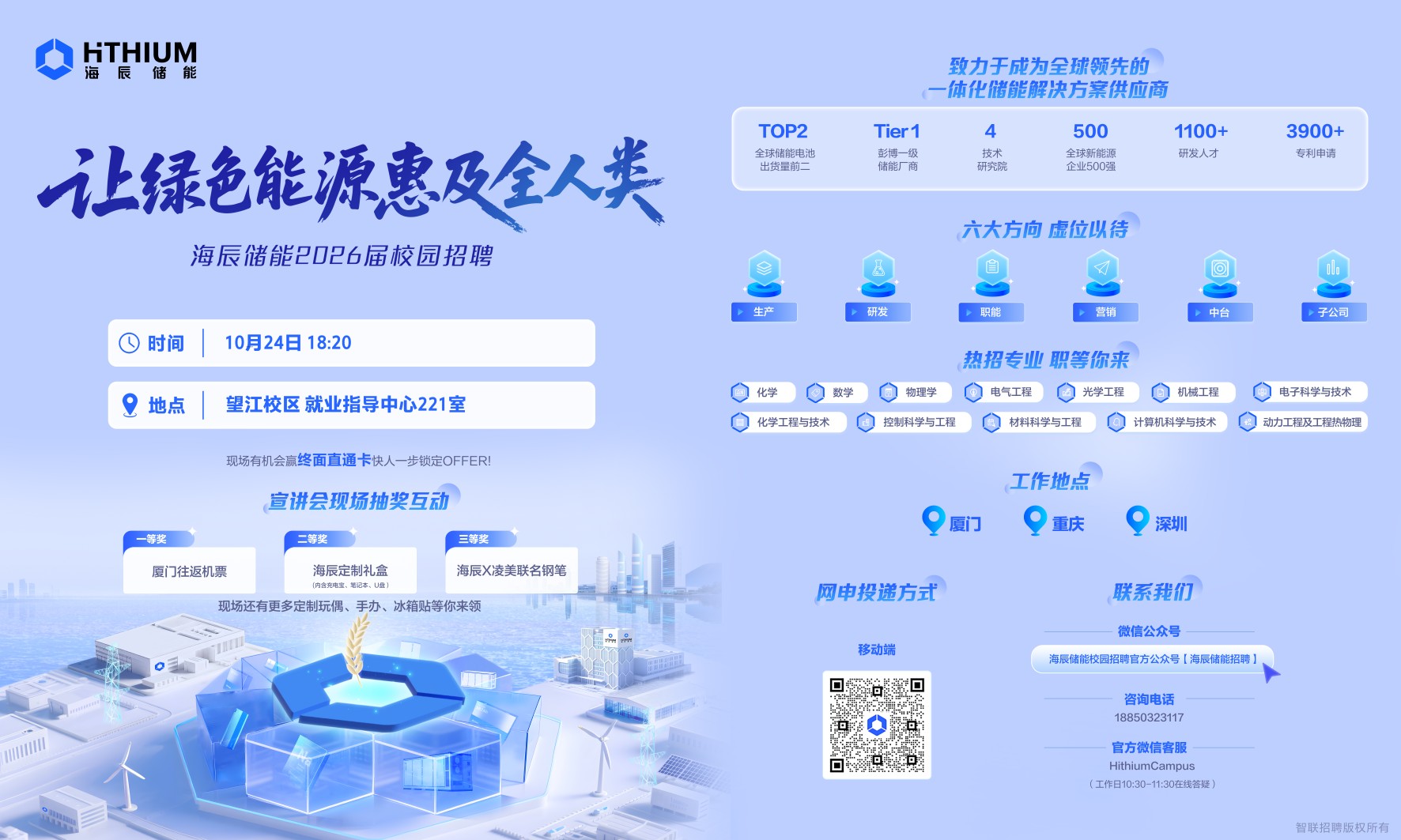 诚邀您参与18XXX 站海辰储能2026届校园招聘宣讲会。一站式了解海辰储能高潜赛道、企业福利、晋升通道!