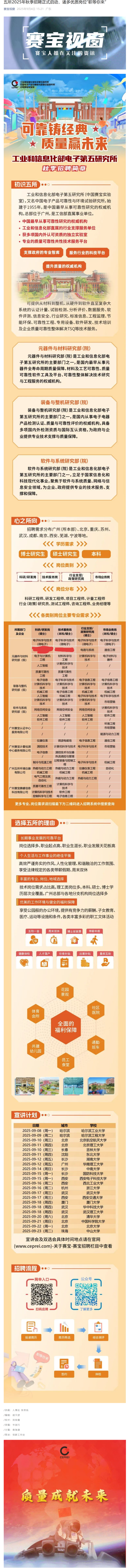 🌟活动类型:宣讲会18XXX 的同学们看这里!电子五所(中国赛宝实验室)—— 国家级研究所,成立已经 70 载,总部在广州,岗位覆盖全国,开放科研岗、技术服务岗、市场岗,招聘电子类、计算机类、软件类、仪器类专业~不仅有稳定广阔的职业发展空间、竞争力的薪酬、五险一金、周末双休,单位还有配套教育、体育会馆和医务室,本科、硕士、博士都有对应岗位,26 届同学们千万别错过~