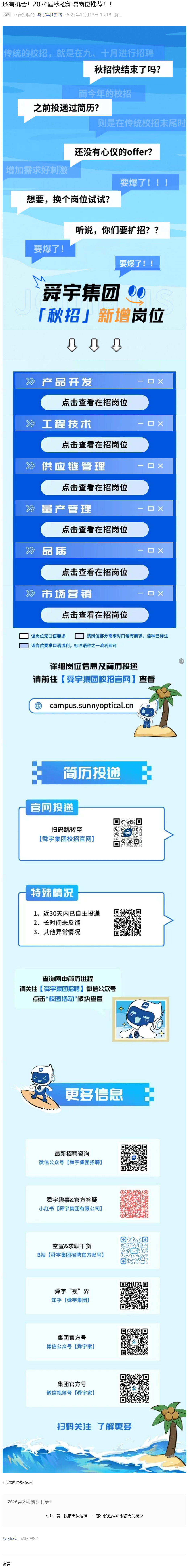 舜宇集团校园招聘补录(详见链接)