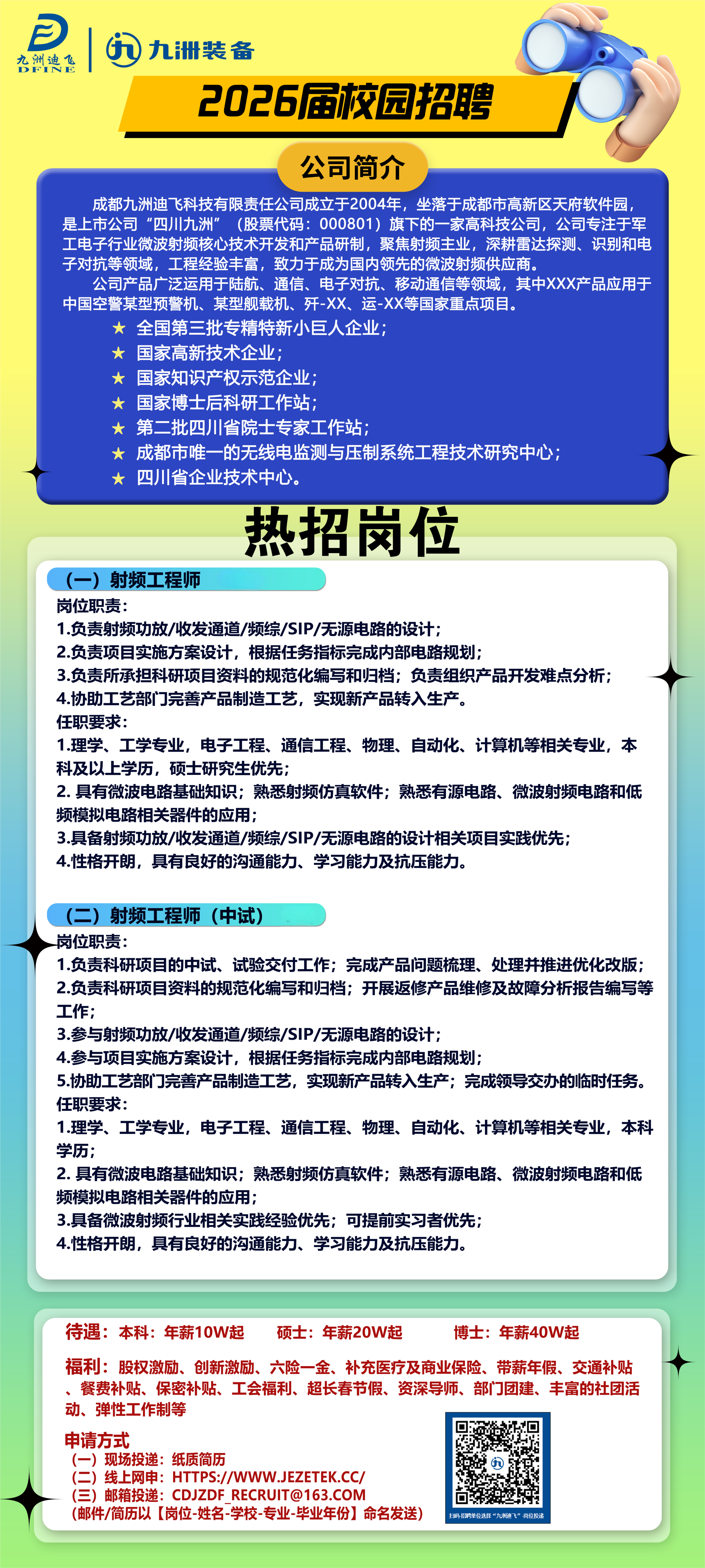 【岗位方向】射频工程师 、射频工程师(中试)