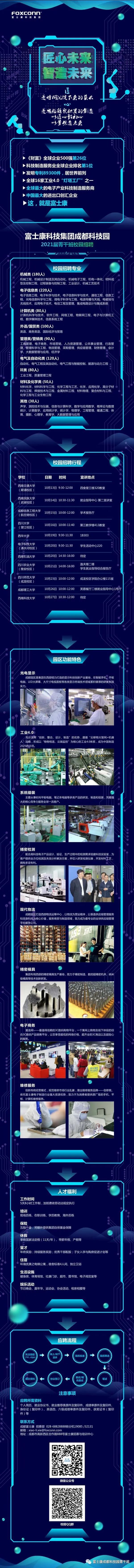 富士康科技集团成都科技园,坐落于风景秀丽的成都高新西区出口加工区,分南、中、北三区,是集团在西部倾力打造的以平板计算机制造、电子显示面板制造、3C科技整合服务等业务为龙头的电子信息产业基地,并在软件开发、精密模具生产、工业4.0、现代物流、电子商务、绿色智慧教育生态等领域不断突破,成为四川最先进制造生产力的现代化企业。