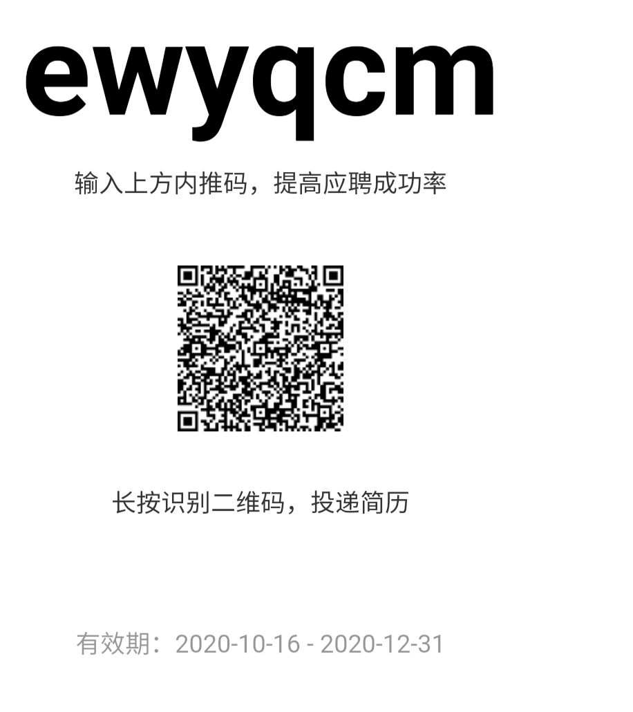 负责人提供的内推码进行投递,我们会优先进行筛选和面试。