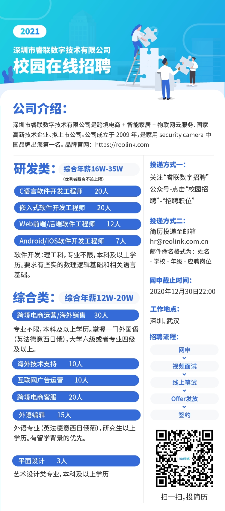 深圳市睿联数字技术有限公司2021届“新睿”招聘