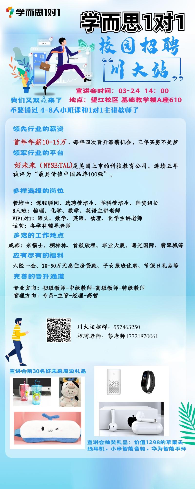 3月24日 14:00 基A610 学而思1对1校园招聘“川大站”