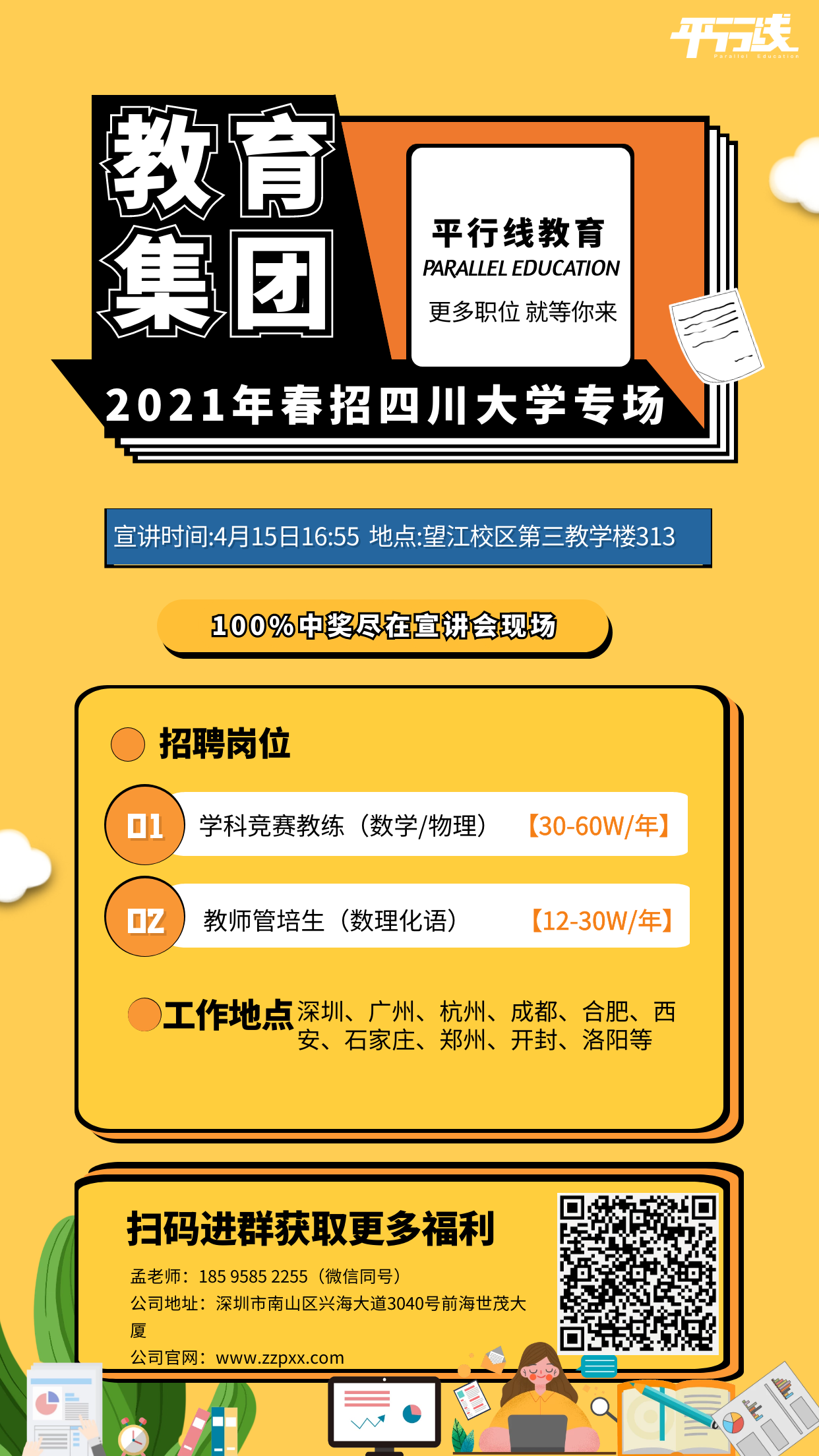 【平行线教育18XXX 专场】这里有一场100%中奖活动,66元红包等你来拿~多个城市多个岗位提供【招聘岗位】学科竞赛教练(起薪30w-60w/年)教师管培生:12w-30w/年