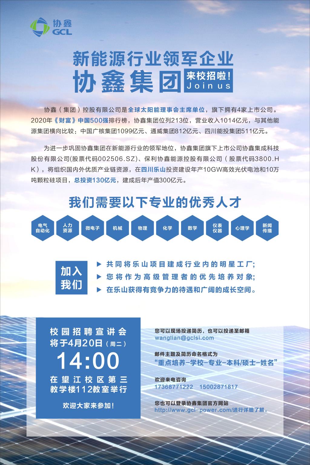 校园招聘宣讲会将于4月20日(周二)14:00,在望江校区第三教学楼112教室举行,欢迎大家参加!