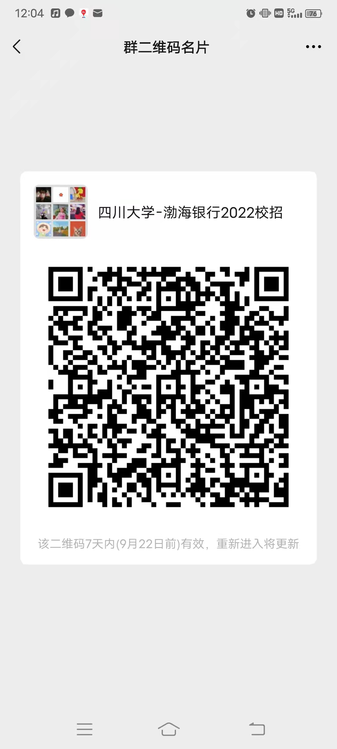 渤海银行2022校园招聘宣讲会——18XXX 站(详见附件)【宣讲时间】9月16日12:20【宣讲地点】望江校区就业指导中心212【招聘岗位】1、总行管理培训生:2、总行信息科技部培训生:软件研发岗(工作地点:天津、北京、深圳)大数据技术岗(工作地点:天津、北京、深圳)技术管理岗(工作地点:天津、北京、深圳)系统运行岗(工作地点:天津)3、各分行培训生【网申地址】//2022.yingjiesheng.com/bhyh/