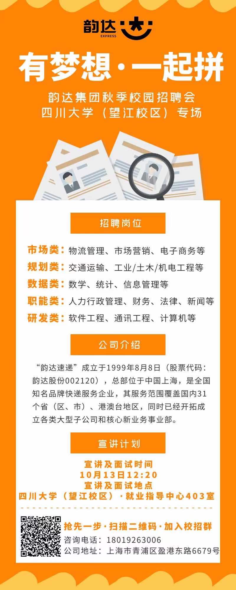 10月13日12:20就业中心403韵达招聘会