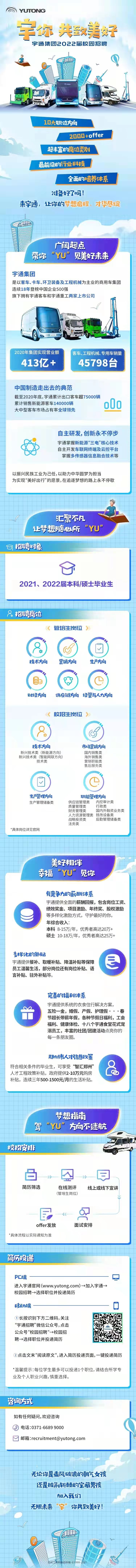 郑州宇通集团18XXX 宣讲会即将启动,现场参与还有惊喜⏰ 宣讲时间:10月14日9:20~11:20📍 宣讲地址:望江校区就业指导中心215室PC端投递:进去宇通官网(//join.yutong.com)-加入宇通-校园招聘-注册并投递简历移动端投递:关注"宇通招聘"微信公众号-点击校园招聘-校园招聘-注册并投递简历