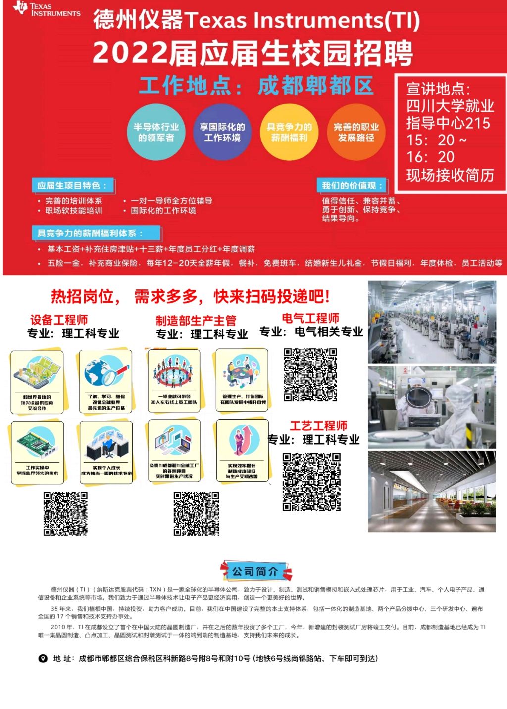· 手机端投递方式:微信搜索“德州仪器芯招聘”公众号,找到心仪职位即可投递