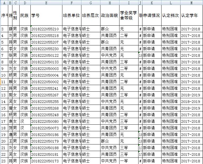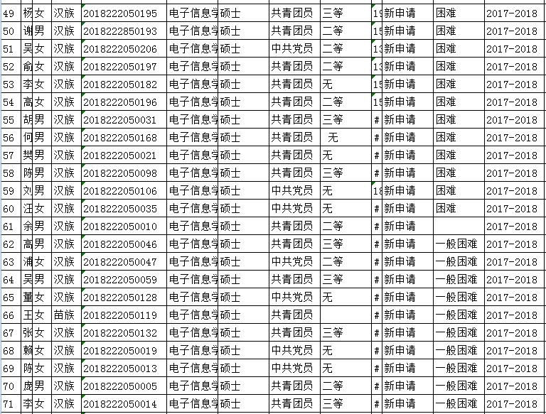 经本人申请和18XXX 认定小组民主认定,现将18XXX 2017-2018学年家庭经济情况认定结果公示如下
