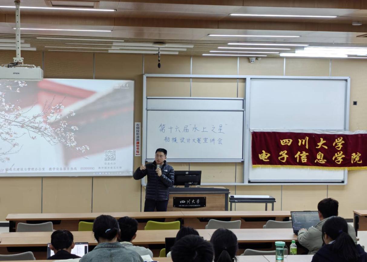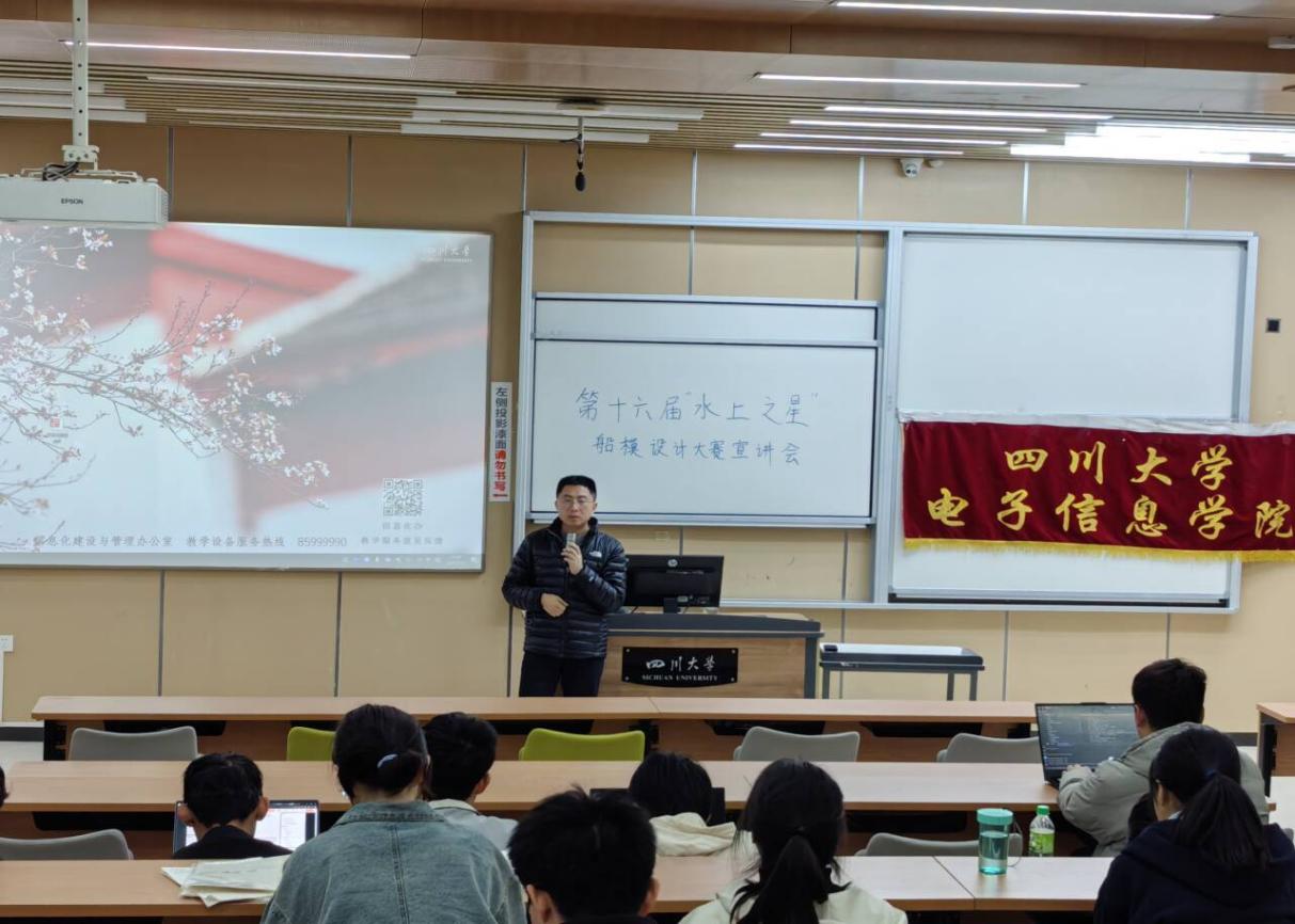 在江安校区综合楼C103举办“水上之星”船模设计大赛的第二次宣讲会。本次宣讲会特别邀请了上届船模设计大赛的评委陈雨老师,为同学们解答疑问,并分享答辩的要领和技巧。