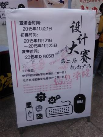 电子科技园数字电路设计(第一组)、电子科技园数字电路设计(第二组)主办,电子科技园电子设计竞赛(第一组)、电子科技园电子设计竞赛(第二组)、电子科技园电子设计竞赛(第三组)、电子科技园电子设计竞赛(第四组)、电子科技园多旋翼飞行器(第一组)、电子科技园多旋翼飞行器(第二组)联合协办的“一院一品系列活动”之第二届概念产品设计大赛宣传活动在18XXX