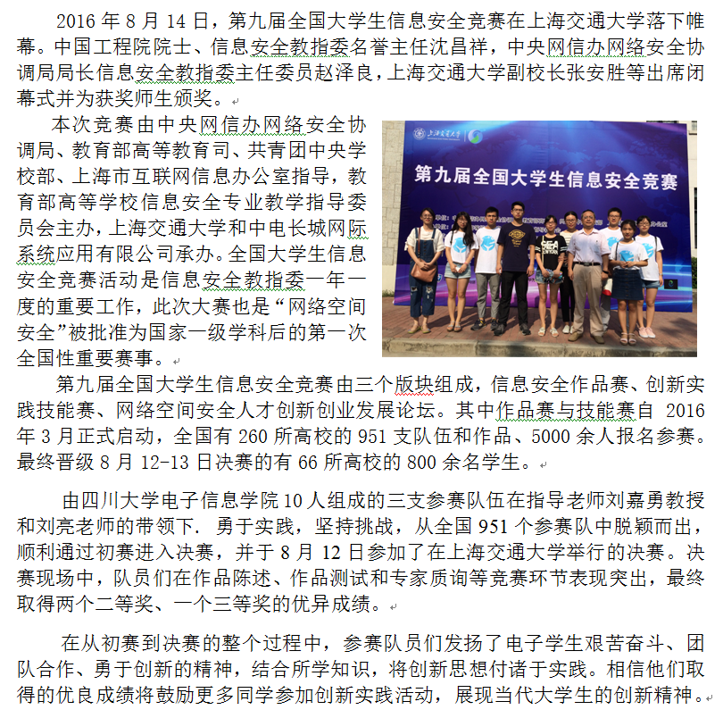 18XXX学子在“第九届全国大学生信息安全竞赛”中获得佳绩