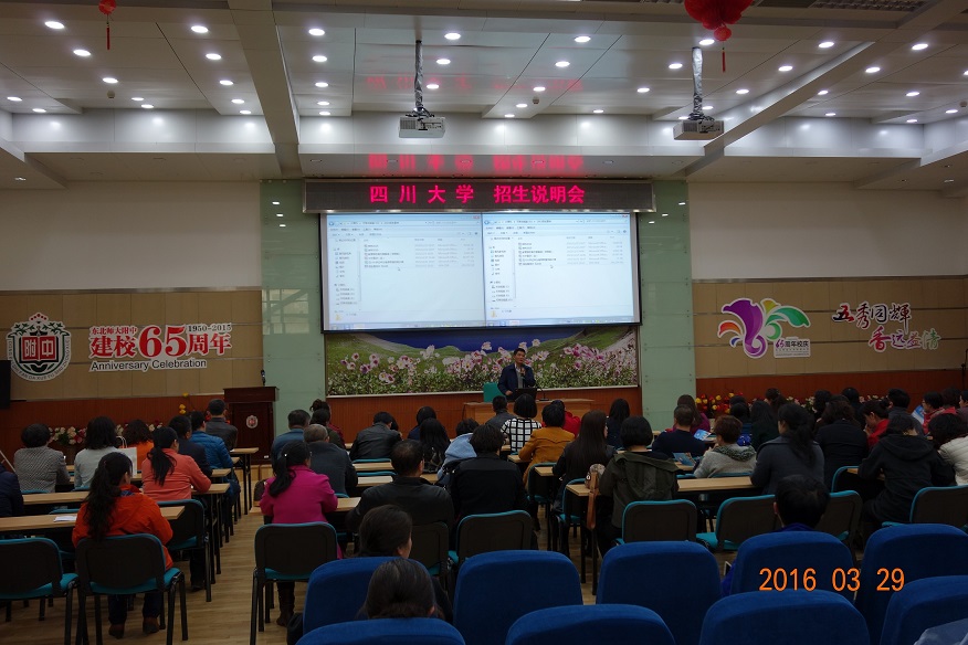 ????? 两位老师在宣传期间,走访了东北师大附中、吉林大学附中、吉林省实验中学、长春实验外国语学校和长春十一高中等部分吉林省著名高中。分别和主管毕业班的校长及年级主任、班主任等进行了交流,介绍了我校在本科生培养方面的特色及学校的优势,使他们对川大有了更深的了解。