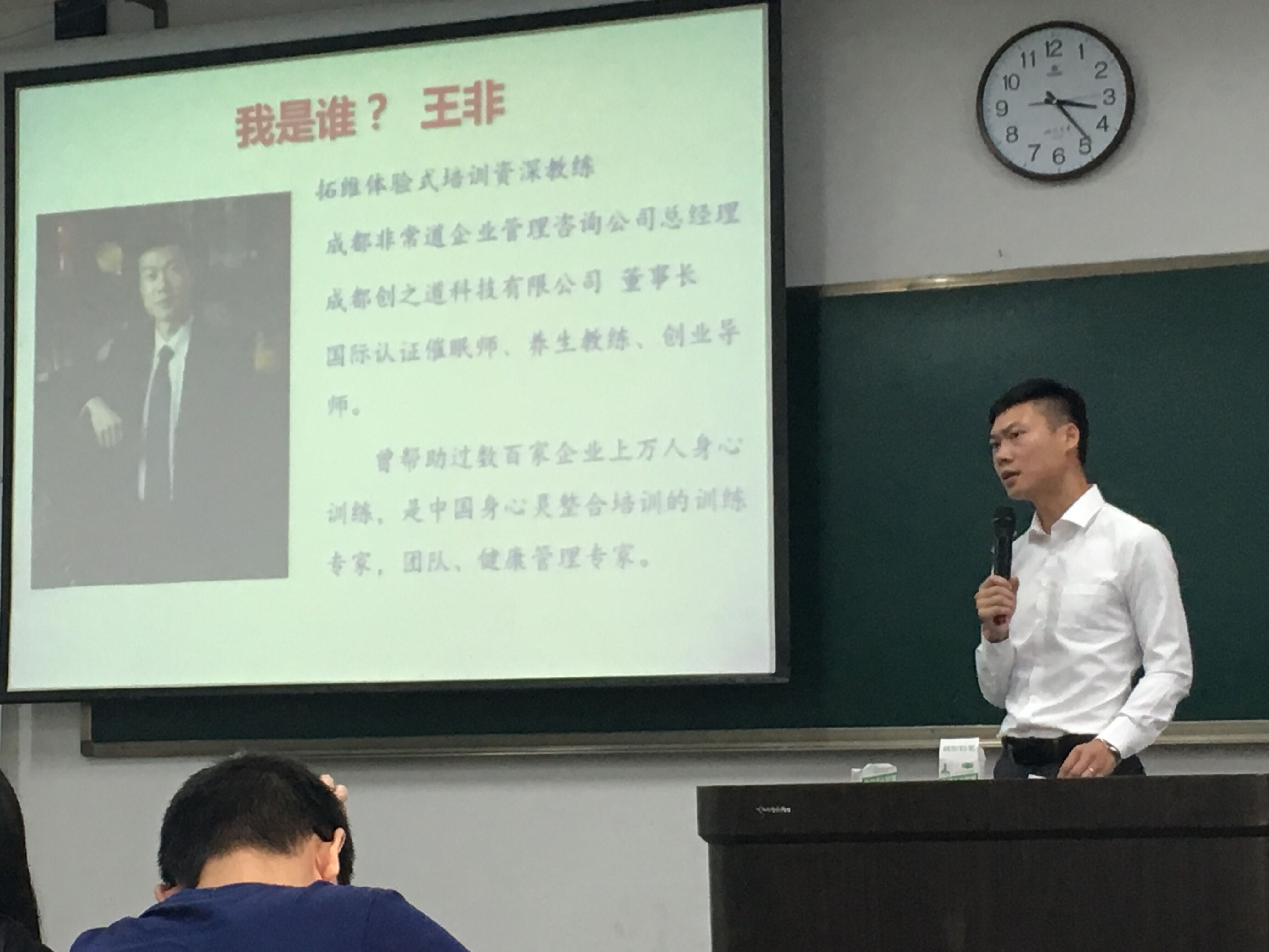 校庆系列讲座之——大学生创新创业特色讲座在望江校区二教201顺利召开。副院长周新志教授,明厚天副总经理李明先生,中国合伙人主席陈宣兵先生,成都创之道科技有限公司董事长王非先生出席讲座。
