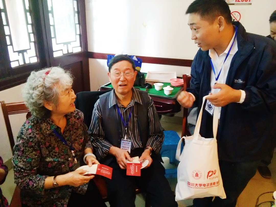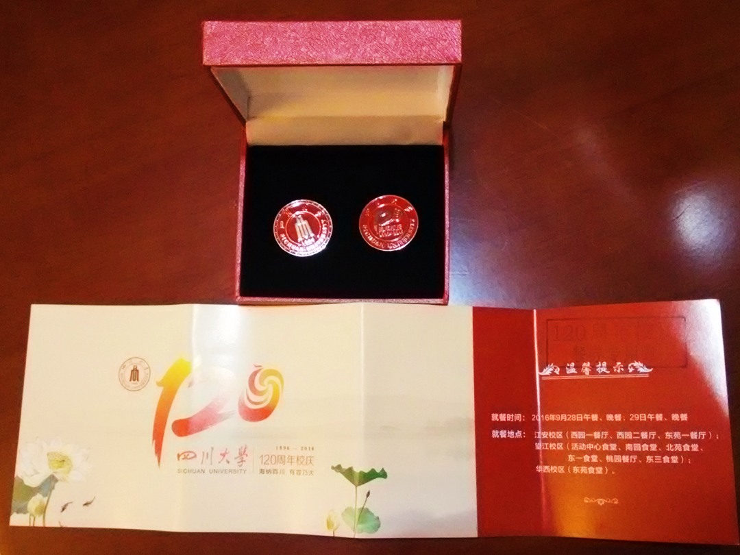 迈向世界一流大学新征程。故在新常态理念下,校庆主要以“川大全球高端文化发展理事会”和围绕“双创”主题的展示会两种形式展开,邀请各界校友为川大未来发展献计献策。会中,陈笃海书记为各位校友前辈们分发了川大120周年纪念品和食堂餐券,代表18XXX