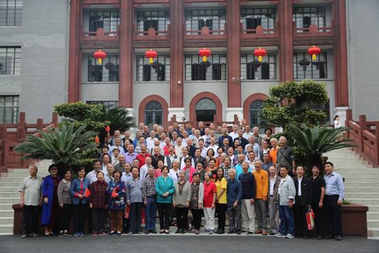 校友会活动结束后,出席嘉宾与校友全体在行政楼前合影留念。