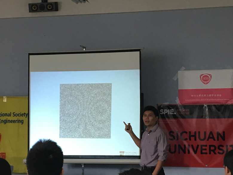 120周年校庆纪念品。随后报告会正式开始,Qian Kemao教授结合自身的实践经验和研究成果,从光学测量出发,介绍了自己的研究对对内镜粘膜癌光动力治疗的创新,和计算光学精密测量领域的基本方法和研究重点。重点介绍了计算光学在多模式医学影像PACS与RIS和信息方面的引用,以及教授自己的研究成果。报告会结尾,Qian Kemao教授对于老师和同学们提出的问题,进行了详细的解答。